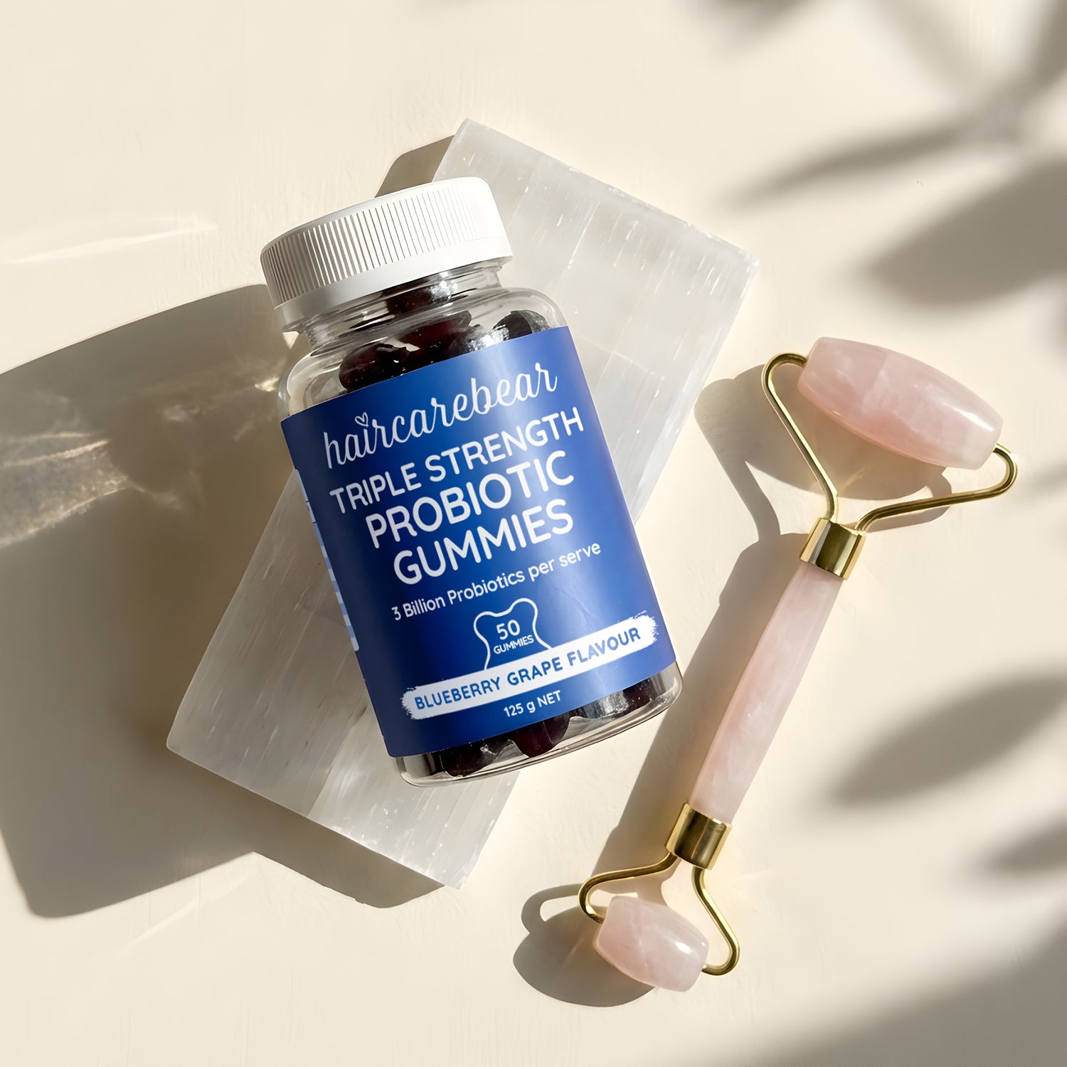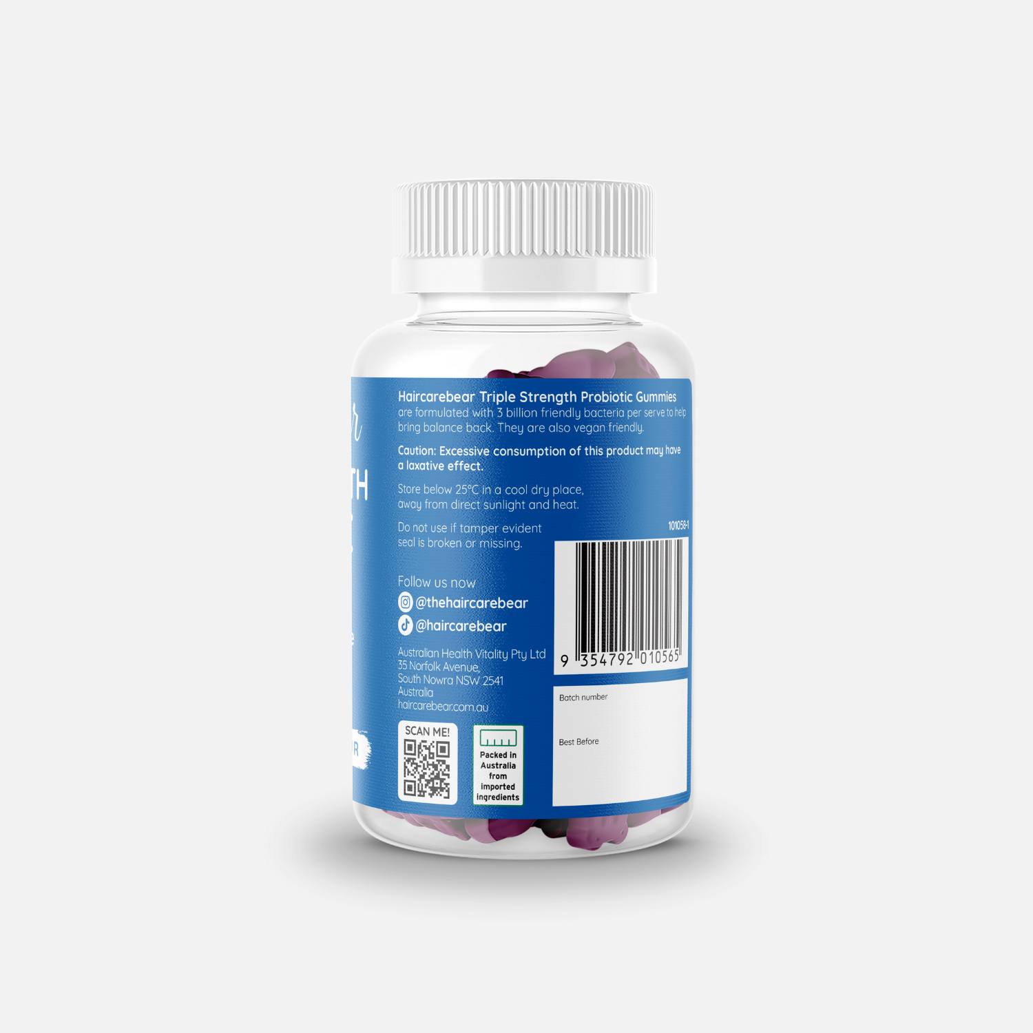Haircarebear Triple Strength Probiotic Gummies are formulated with 3 billion friendly bacteria per serve to help bring balance back. They are also vegan friendly.